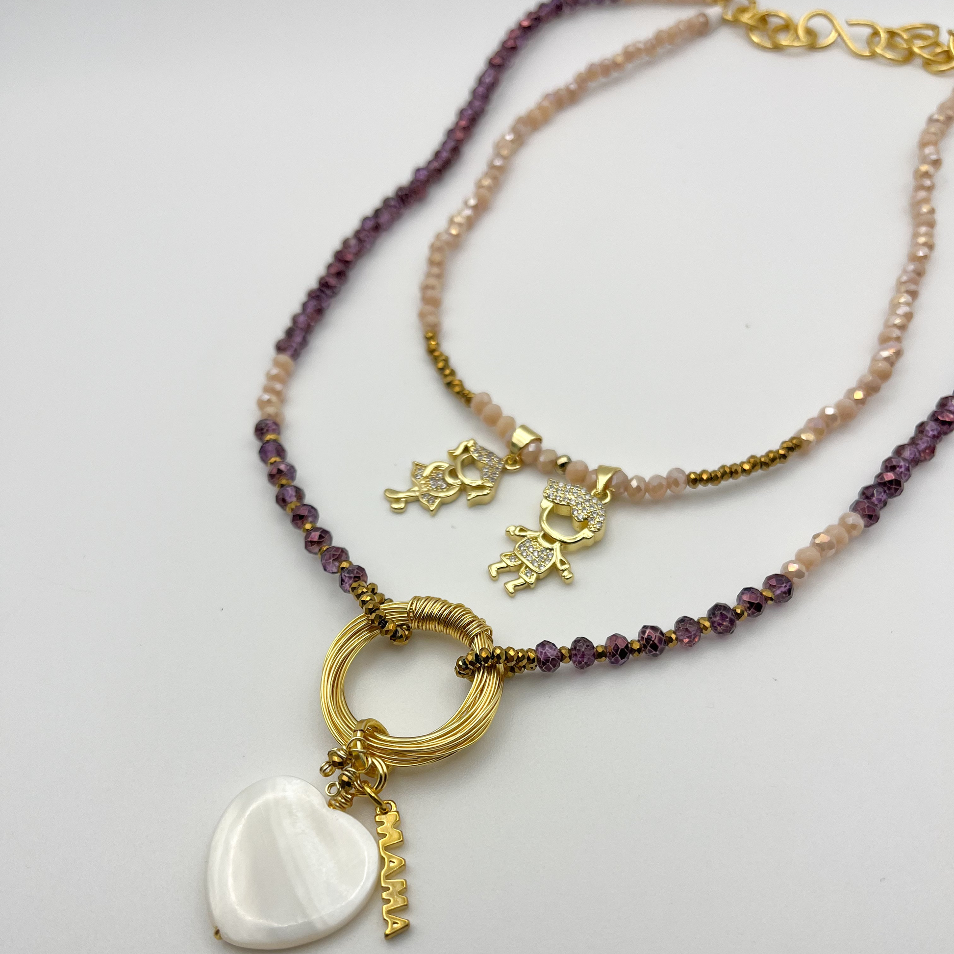 Central charm with a gold ring and natural shell engraved with "MAMA"