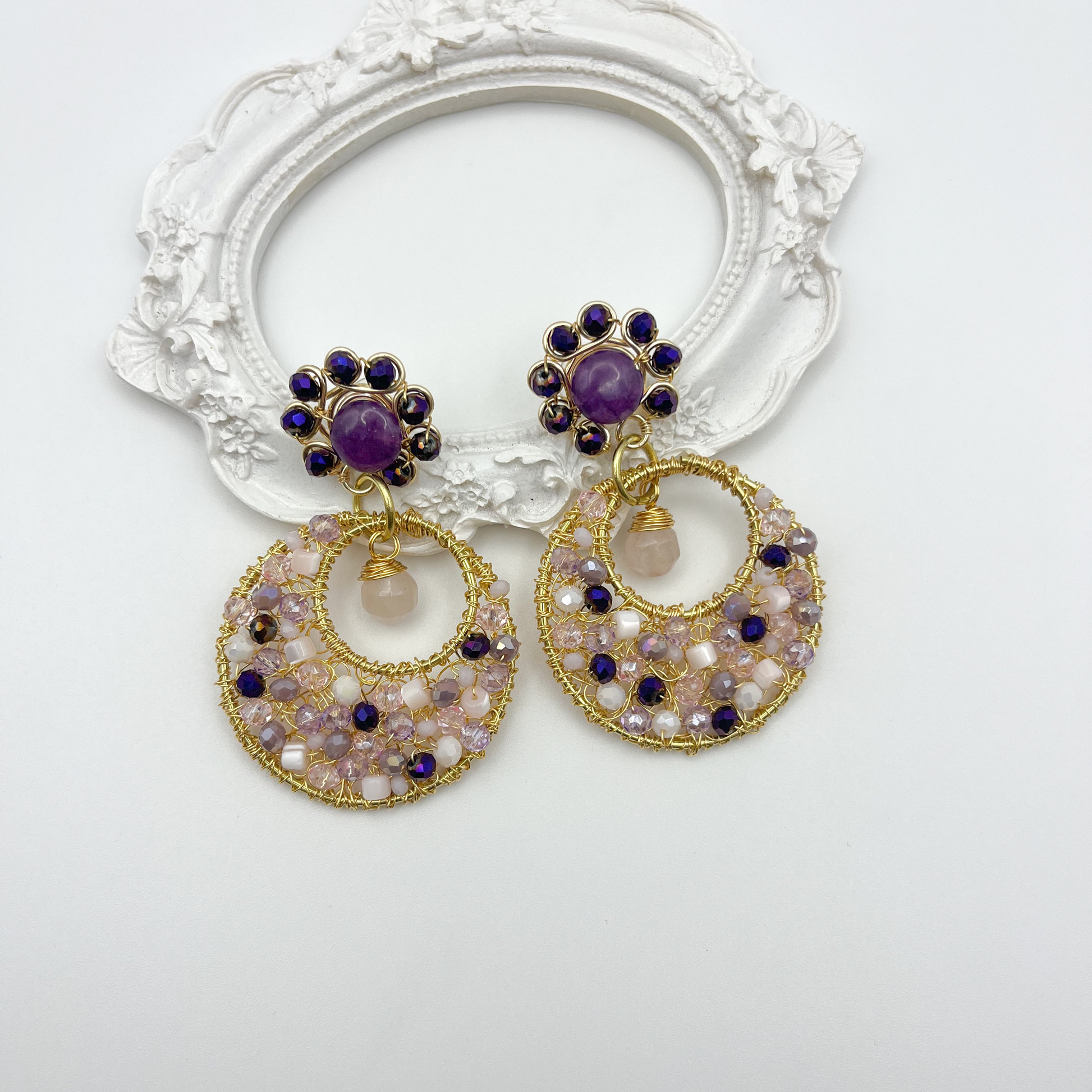 Estos hermosos aretes combinan el trabajo artesanal en alambre de oro con la belleza de las piedras naturales, creando una pieza única y sofisticada.